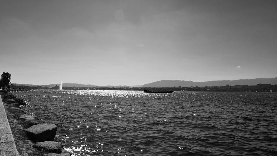 Keywords: lake stars water jet waves reflections light shine contrast horizon boat light reflections landscape