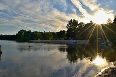Keywords: lake sun beach water sunset surface sky west reflection pond