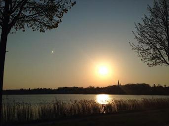 Keywords: lake sun evening sunset water mirror abendstimmung