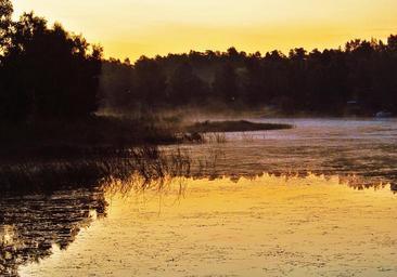 Keywords: lake sunrise sunset forest plants fog island beautiful dawn tranquil scenic view silence outdoor landscape water orange silhouette morning evening nature
