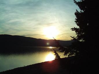 Keywords: lake sunset orange sky mountains forest evening dusk