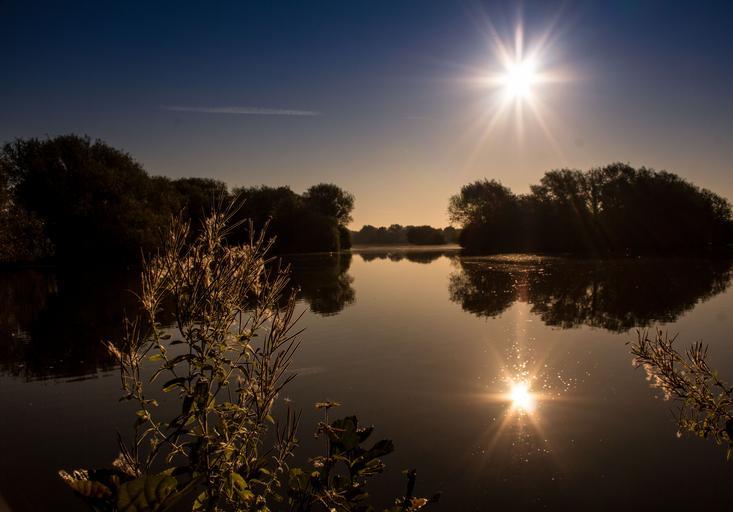 Keywords: lake sunset reflection scene beautiful calm dawn dusk evening sunflare