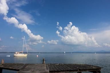 Keywords: lake swim sail sailing boat web anchorage water landscape storm clouds summer leisure bank badesee holiday holidays mountains sky recovery chiemsee upper bavaria