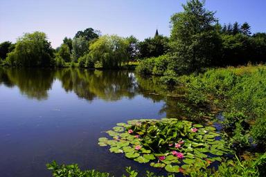 Keywords: lake trees water lilies idyllic sky mood rest landscape