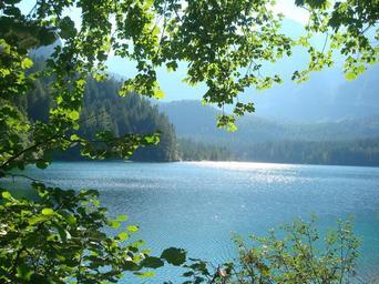 Keywords: lake view calming beautiful nature italy landscape mountains river light sun sunny weather forest trees green leaves