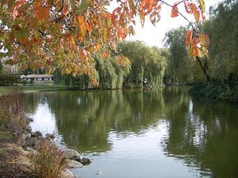 Keywords: lake water maple leaf park fall autumn trees colorful