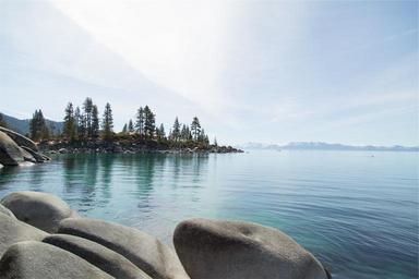 Keywords: lake water rocks trees mountains nature landscape blue sky sunny sunshine