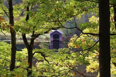 Keywords: lake waters boat house beech leaves leaves autumn aesthetic branches beech branches october trees log lighting sunlight fall foliage green hike eifel rursee upper lake germany landscape nature