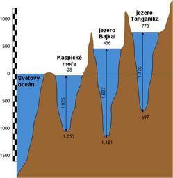 | Keywords: Lakes scheme CZ.png geology cs Schéma tří jezer na Zemi Kaspické moře Bajkal a Tanganika en Scheme of three lakes of Earth Caspian sea Baikal and Tanganyika ru С авнительная схема т ёх озё планеты Каспийского мо я Байкала и Танганьики own based on Lakes scheme png 2009-08-16 Lukáš Mižoch original by Afonin 100px Lake Baikal Caspian Sea Tanganyika Diagrams of lakes |