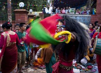 Keywords: lakhe newar festival nepal religion ritual nepal culture ritual religious people dance dancing folk-dance folk dance square dance