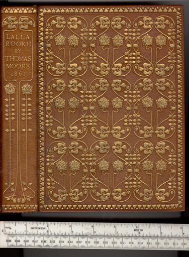Keywords: Lalla Rookh - Upper cover and spine (c188b37).jpg Style Art nouveau; Caption Upper cover and spine; Colour Brown; Edge Gilt exhibition history Decorative Technique Tooled in gold; Cover Material Goatskin includes morocco turkey etc Signed MACLEHOSE GLASGOW Turn ins tooled in gold Smooth spine tooled and lettered in gold Edward Bayntun Coward states; Ink stamp of Bolton Public Libraries on the verso of the title along with acquisition number and foot of p 329 A very good copy of this significant Sixties book Published at five guineas it was described by a contemporary Times critic as the greatest illustrative achievement by any single hand The binding probably dates from the 1890s and must be one of MacLehose's more original and elaborate works James MacLehose 1811-1885 established himself as a bookseller in Glasgow in 1838 initially in partnership with Robert Nelson and on his own from 1841 In 1849 he moved to 61 St Vincent Street and in 1862 a bindery was added In 1881 he took on his two sons and they carried on the business after his death A portrait of the founder was printed in The British Bookmaker vol VI no 66 December 1892 pp 125-6 and the reported noted that the binding department has been made a very important branch of the establishment where work is executed in the very best style but no ordinary trade work is done All the books bound here are either the firm's own work or the work of private customers who appreciating its quality frequently send long distances to secure the execution of their orders meeting their own requirements Levant morocco and a special calf are the principal styles hand finished and single lettered and though many of the books are elaborately bound with special designs a large share are in the severely plain style which finds favour particularly in Scotland This book was amongst a number of bindings recently sold by Bolton Public Libraries Others were by Cedric Chivers and Sir Edward Sullivan and they appear to have been assembled at about the turn of the last century object history Text 1861; London; Unspecified object type Cc-zero place of creation Binding Scotland place of discovery Unspecified British Library image http //www bl uk/catalogues/bookbindings/LargeImage aspx RecordId 020-000009032 ImageId ImageId 44121 Copyright BL Lalla Rookh Uploaded with GWToolset Lalla Rookh - Upper cover and spine c188b37 http //www webarchive org uk/bldatasets/bindings/9707_3 jpg 19th-century bookbinding Bookbinding British Library Bookbindings |