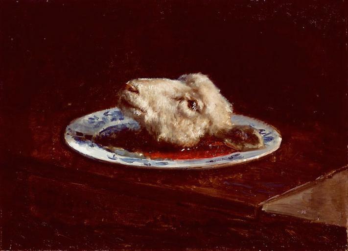 | Keywords: Lammehoved på fad (1880 painting).jpg Artwork Creator Viggo Johansen Lammehoved på fad A lamb's head on a plate 1880 oil canvas 37 x 53 cm Institution Skagens Museum Skagen http //www skagensmuseum dk/index php id 530 Other versions PD-old-100 1880 paintings Dead animals in art Paintings by Viggo Johansen in Skagens Museum Lambs in art |