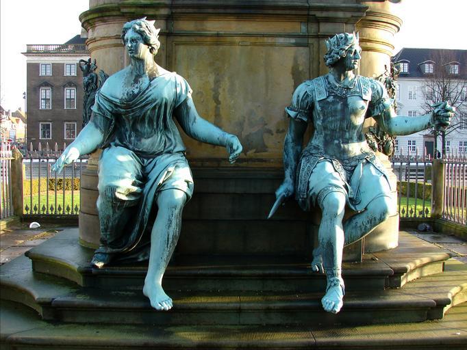 Keywords: Lamoureux skulpturer.JPG Skulpturer fra Lamoureux' rytterstatue af Christian V Kongens Nytorv København own 2011-12 Orf3us Christian V statue in Kongens Nytorv PD-old-100
