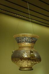 | Keywords: Lamp enameled glass Louvre OA 7880-66.jpg artist Lamp bearing the name of Sultan al-Malik al-Nasir al-Din Muhammad ibn Qala'un 1294 “1340 The neck bears the beginning of sura an-Nur Light of the Qur'an Allah is the Light of the heavens and the earth The Parable of His Light is as if there were a Niche and within it a Lamp the Lamp enclosed in Glass the glass as it were a brilliant star Lampe portant le nom du sultan al-Malik al-Nasir al-Din Muhammad ibn Qala'un 1294-1340 Sur le col est inscrit le début de la sourate an-nÅ«r « La Lumière » du Coran « Allah est la Lumière des cieux et de la terre Sa lumière est semblable à une niche où se trouve une lampe La lampe est dans un récipient de cristal et celui-ci ressemble à un astre de grand éclat » - 1294 1340 glass blown decoration gilt decoration enamelled Institution Louvre object department Islamic art object history credit line ProvenanceEvent deposit Louvre Cluny Museum 1926 accession number Louvre number 7880/ 66 own Marie-Lan Nguyen photo date 2006 other versions Glass mosque lamps Mamluk art in the Louvre museum Islamic glassware in the Louvre Enamel Mamluk Sultanate Cairo |