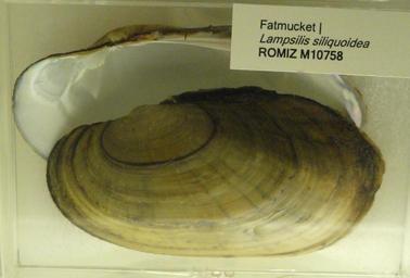 | Keywords: Lampsilis siliquoidea - Royal Ontario Museum - DSC00195.JPG Exhibit in the Royal Ontario Museum Toronto Ontario Canada Photography was permitted in the museum I took this photograph and release it into the public domain Daderot 2011-11-21 12 43 03 Daderot cc0 cc0 Natural History Galleries at the Royal Ontario Museum Lampsilis siliquoidea |