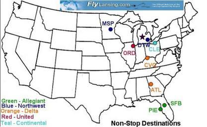 MAKE A MEME View Large Image LAN Route Map 2008-May.jpg Updated Capital City Airport Route Map effective May 4th 2008 when Continental Airlines resumes daily service to Lansing from Cleveland en wikipedia dj1997 2007-11-10 RDULAN wikipedia en RDULAN cc-by-sa-3 0 ...