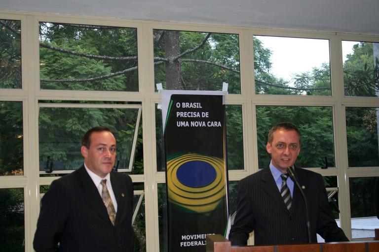 Keywords: livro de thomas korontai livrodethomaskorontai people groupshot Uma das principais lideranças que lutam pela criação do Partido Federalista lançou na quarta-feira (16/03), na Assembleia Legislativa, o livro “Cara nova para o Brasil”, com o apoio do deputado estadual Stephanes Junior (PMDB). Thomas Korontai, presidente do Instituto Federalista propõe na obra um novo modelo de organização federativa do Estado brasileiro. O autor lembra que 75% de tudo o que é arrecadado no Brasil vai para o governo federal e que o que está errado é o modelo de organização do Brasil, “que cria uma gigantesca burocracia que trava a vida do cidadão e das empresas, cria o clientelismo político e a corrupção”. Korontai defende que a proximidade do poder significa transparência na administração, redução de impostos, fortalecimento da economia, geração de empregos, igualdade de oportunidades, justiça ágil e justa para todos. Foto: Maria de Freitas / Alep Uma das principais lideranças que lutam pela criação do Partido Federalista lançou na quarta-feira (16/03), na Assembleia Legislativa, o livro “Cara nova para o Brasil”, com o apoio do deputado estadual Stephanes Junior (PMDB). Thomas Korontai, presidente do Instituto Federalista propõe na obra um novo modelo de organização federativa do Estado brasileiro. O autor lembra que 75% de tudo o que é arrecadado no Brasil vai para o governo federal e que o que está errado é o modelo de organização do Brasil, “que cria uma gigantesca burocracia que trava a vida do cidadão e das empresas, cria o clientelismo político e a corrupção”. Korontai defende que a proximidade do poder significa transparência na administração, redução de impostos, fortalecimento da economia, geração de empregos, igualdade de oportunidades, justiça ágil e justa para todos. Foto: Maria de Freitas / Alep |