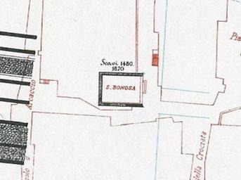 Keywords: Lanciani 1893–1901 Santa Bonosa.jpg it Pianta di Lanciani 1893 “1901 Portion of Lanciani's map Rodolfo Lanciani other versions Custom license marker 2015 11 16 PD-Old-100 Rodolfo Lanciani Santa Bonosa Rome Uploaded with UploadWizard