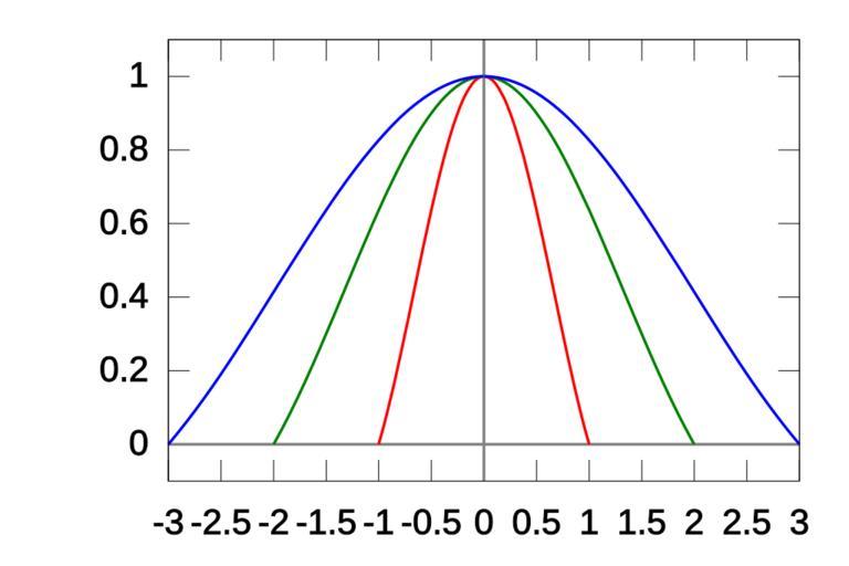 | Keywords: Lanczos-windows.svg Lanczos windows for 3 different scales 1 2 and 3 Self-made in gnuplot gnuplot 2009-04-14 Nils R Barth gnuplot source <source lang gnuplot > Graphs of Lanczos window Central lobe of normalized sinc scaled to different widths Set terminal set terminal svg enhanced size 300 200 fs 10 set samples 1001 high quality set border 31 linewidth 3 thin border set output lanczos-windows svg Ranges set xrange -3 3 Widest window is -3 to 3 set xtics 5 Accords with existing graphs provides scale set yrange - 1 1 1 Slight headroom from max of 1 set ytics 2 Accords with existing graphs Zero axes as guidelines no key self-explanatory set zeroaxis unset key Define and plot function sinc x sin pi x / pi x Normalized sinc set parametric Parametric to provide alt ranges plot t -1 1 t sinc t \ 2 t sinc t \ 3 t sinc t </source> Window function Lanczos filters Images with Gnuplot source code |
