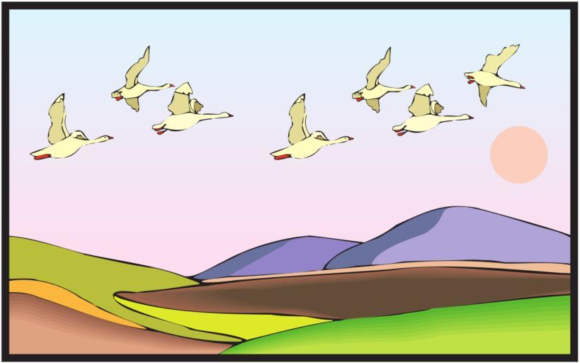 Keywords: land birds flying sunset mountains geese fly landing