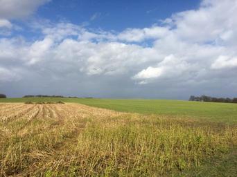 Keywords: land field agriculture landscape nature sky clouds fields arable floor ground fruitful wide harvested rural trees stubble