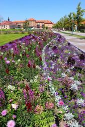 Keywords: landesgartenschau landau plant flowers trees blue sky no cloud nature green market sector away building landscape