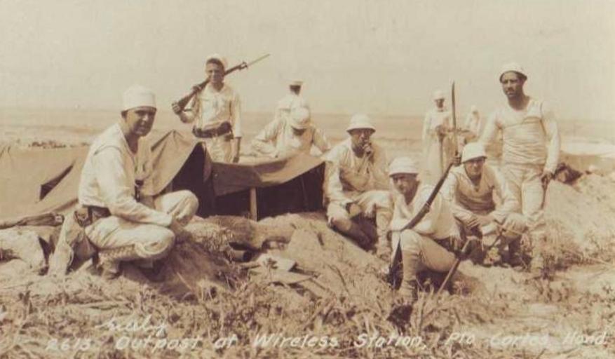 | Keywords: Landing of US sailors Puerto Cortes.jpg en Undated photo showing a party of US sailors with material at the beach neat Puerto Cortes Honduras Probably an advance party part of the US intervention from mid-March to late April 1907 during the Honduran-Nicaraguan war when Nicaraguan troops invaded Honduras to overthrow President Bonilla The Navy detachments were landed to protect American civilians and property circa 1903 1907 Delcampe net Unknown 1903 other versions PD-old-100 Uploaded with UploadWizard United States Navy Puerto Cortes |