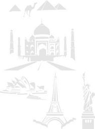 Keywords: landmarks taj mahal eiffel tower pyramids sydney opera house statue of liberty set gray silhouettes historic history heritage famous