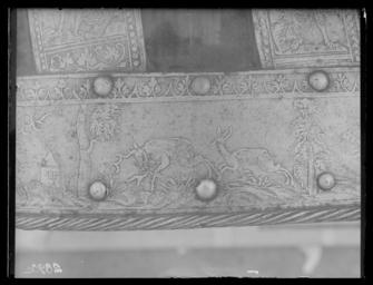 | Keywords: Ländpansar till hästrustning, har troligen tillhört Johan III, 1500-tal - Livrustkammaren - 10975.tif LSH artwork sv Bestående av 45 plåtar i varierande storlek sammanfogade med nitar och på insidan kantband av sämskat läder Längs kanterna rader av nitar med kullriga mässingsskallar Formen välvd och formad efter hästens kropp med bredare bakparti Varje sida delas in i 14 rektagulära fält klädda med mörkrött siden Kanter och flätverk med på den blanka utsidan ett heltäckande etsat mönster iform av nertill jaktscener och på banden helfigurbilder på män i olika typer av rustning varav några med sköldar Mellan figurbilderna runda medaljonger med byster av män och kvinnor i antikiserande kläder Pansarets övre del består av ett separat långsmalt stycke med framtill dekor av tätt rankverk och baktill format till en liggande hundliknande drake med lång ringlande svans uppspärrat gap och uppåtpekande öron Kroppen täckt av etsade lövliknade fjäll djurets längd 720 mm Insidan brunsvart och ojämn med tyliga slagmärken Längs nedre kanterna 20 mm breda band av brungult sämskat läder original caption century 16 velvet Färg mörkt röd material sammet - brass - steel - leather Färg brungul material läder g 8600 size mm 890 650 340 LRK Johan III av Sverige Tre Konungar på Åbo slott 1993 Björneborg - Johans stad Satakunta Museum Björneborg/Pori 2008 Trofast - hov och tass i kunglig tjänst 2010-2011 Livrustkammaren Trogna vänner - Kungliga hästar och hundar 2011-2012 Museiverket/Finlands nationalmuseum place of origin original filename LN_E02917 59504 inventory number LRK 22862 10975 CC0 Ländpansar till hästrustning har troligen tillhört Johan III 1500-tal - Livrustkammaren - 10975-negative tif <gallery caption Different images of same object > File Ländpansar till hästrustning troligen tillhörigt Johan III 1500-tal - Livrustkammaren - 79460 tif File Ländpansar till hästrustning troligen tillhörigt Johan III 1500-tal - Livrustkammaren - 2415 tif File Ländpansar till hästrustning troligen tillhörigt Johan III 1500-tal - Livrustkammaren - 36659 tif File Ländpansar till hästrustning troligen tillhörigt Johan III 1500-tal - Livrustkammaren - 70895 tif </gallery> <gallery caption Related objects > File Manpansar möjligen tillhörigt Johan III 1500-talets mitt - Livrustkammaren - 19537 tif LRK 22860 File Manpansar möjligen tillhörigt Johan III 1500-talets mitt - Livrustkammaren - 36657 tif LRK 22860 File Manpansar möjligen tillhörigt Johan III 1500-talets mitt - Livrustkammaren - 62337 tif LRK 22860 File Bogpansar till hästrusning troligen tillhörigt Johan III 1500-tal - Livrustkammaren - 35526 tif LRK 22861 File Manpansar möjligen tillhörigt Johan III 1500-talets mitt - Livrustkammaren - 70899 tif LRK 22860 File Bogpansar till hästrusning troligen tillhörigt Johan III 1500-tal - Livrustkammaren - 44085 tif LRK 22861 File Bogpansar till hästrusning troligen tillhörigt Johan III 1500-tal - Livrustkammaren - 79454 tif LRK 22861 File Manpansar möjligen tillhörigt Johan III 1500-talets mitt - Livrustkammaren - 79458 tif LRK 22860 File Manpansar möjligen tillhörigt Johan III 1500-talets mitt - Livrustkammaren - 53776 tif LRK 22860 File Manpansar möjligen tillhörigt Johan III 1500-talets mitt - Livrustkammaren - 45215 tif LRK 22860 File Manpansar möjligen tillhörigt Johan III 1500-talets mitt - Livrustkammaren - 10973 tif LRK 22860 File Manpansar möjligen tillhörigt Johan III 1500-talets mitt - Livrustkammaren - 28096 tif LRK 22860 File Utställningsbild sadlar hästrustningar mm - Livrustkammaren - 77173 tif LRK 22861 File Manpansar möjligen tillhörigt Johan III 1500-talets mitt - Livrustkammaren - 2413 tif LRK 22860 File Manpansar möjligen tillhörigt Johan III 1500-talets mitt - Livrustkammaren - 35519 tif LRK 22860 </gallery> Armour Media contributed by LSH 2016-12 |