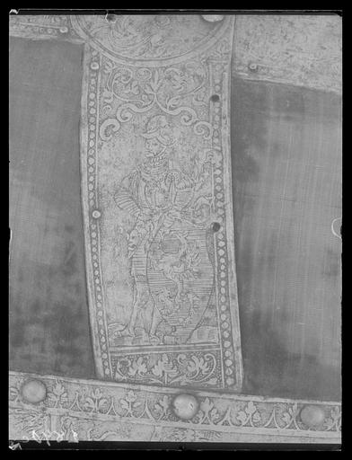 | Keywords: Ländpansar till hästrustning, troligen tillhörigt Johan III, 1500-tal - Livrustkammaren - 36659.tif LSH artwork sv Bestående av 45 plåtar i varierande storlek sammanfogade med nitar och på insidan kantband av sämskat läder Längs kanterna rader av nitar med kullriga mässingsskallar Formen välvd och formad efter hästens kropp med bredare bakparti Varje sida delas in i 14 rektagulära fält klädda med mörkrött siden Kanter och flätverk med på den blanka utsidan ett heltäckande etsat mönster iform av nertill jaktscener och på banden helfigurbilder på män i olika typer av rustning varav några med sköldar Mellan figurbilderna runda medaljonger med byster av män och kvinnor i antikiserande kläder Pansarets övre del består av ett separat långsmalt stycke med framtill dekor av tätt rankverk och baktill format till en liggande hundliknande drake med lång ringlande svans uppspärrat gap och uppåtpekande öron Kroppen täckt av etsade lövliknade fjäll djurets längd 720 mm Insidan brunsvart och ojämn med tyliga slagmärken Längs nedre kanterna 20 mm breda band av brungult sämskat läder original caption century 16 velvet Färg mörkt röd material sammet - brass - steel - leather Färg brungul material läder g 8600 size mm 890 650 340 LRK Johan III av Sverige Tre Konungar på Åbo slott 1993 Björneborg - Johans stad Satakunta Museum Björneborg/Pori 2008 Trofast - hov och tass i kunglig tjänst 2010-2011 Livrustkammaren Trogna vänner - Kungliga hästar och hundar 2011-2012 Museiverket/Finlands nationalmuseum place of origin original filename LN_E02910 59504 inventory number LRK 22862 36659 CC0 Ländpansar till hästrustning troligen tillhörigt Johan III 1500-tal - Livrustkammaren - 36659-negative tif <gallery caption Different images of same object > File Ländpansar till hästrustning troligen tillhörigt Johan III 1500-tal - Livrustkammaren - 79460 tif File Ländpansar till hästrustning har troligen tillhört Johan III 1500-tal - Livrustkammaren - 10975 tif File Ländpansar till hästrustning troligen tillhörigt Johan III 1500-tal - Livrustkammaren - 2415 tif File Ländpansar till hästrustning troligen tillhörigt Johan III 1500-tal - Livrustkammaren - 70895 tif </gallery> <gallery caption Related objects > File Manpansar möjligen tillhörigt Johan III 1500-talets mitt - Livrustkammaren - 19537 tif LRK 22860 File Manpansar möjligen tillhörigt Johan III 1500-talets mitt - Livrustkammaren - 36657 tif LRK 22860 File Manpansar möjligen tillhörigt Johan III 1500-talets mitt - Livrustkammaren - 62337 tif LRK 22860 File Bogpansar till hästrusning troligen tillhörigt Johan III 1500-tal - Livrustkammaren - 35526 tif LRK 22861 File Manpansar möjligen tillhörigt Johan III 1500-talets mitt - Livrustkammaren - 70899 tif LRK 22860 File Bogpansar till hästrusning troligen tillhörigt Johan III 1500-tal - Livrustkammaren - 44085 tif LRK 22861 File Bogpansar till hästrusning troligen tillhörigt Johan III 1500-tal - Livrustkammaren - 79454 tif LRK 22861 File Manpansar möjligen tillhörigt Johan III 1500-talets mitt - Livrustkammaren - 79458 tif LRK 22860 File Manpansar möjligen tillhörigt Johan III 1500-talets mitt - Livrustkammaren - 53776 tif LRK 22860 File Manpansar möjligen tillhörigt Johan III 1500-talets mitt - Livrustkammaren - 45215 tif LRK 22860 File Manpansar möjligen tillhörigt Johan III 1500-talets mitt - Livrustkammaren - 10973 tif LRK 22860 File Manpansar möjligen tillhörigt Johan III 1500-talets mitt - Livrustkammaren - 28096 tif LRK 22860 File Utställningsbild sadlar hästrustningar mm - Livrustkammaren - 77173 tif LRK 22861 File Manpansar möjligen tillhörigt Johan III 1500-talets mitt - Livrustkammaren - 2413 tif LRK 22860 File Manpansar möjligen tillhörigt Johan III 1500-talets mitt - Livrustkammaren - 35519 tif LRK 22860 </gallery> Armour Media contributed by LSH 2016-12 |