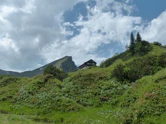 Keywords: landsberger hut mountain hut hut mountains alpine box yoke red lace vilsalpseeberge allgäu alps tyrol austria refreshment
