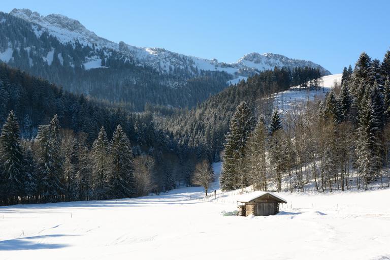 Keywords: landscape bavaria winter nature forest mountains upper bavaria snow wintry panorama view