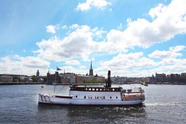 Keywords: landscape boat stockholm clouds sky city capital europe lake river channel water sea boats blue calm barca