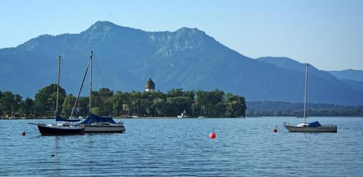 Keywords: landscape chiemgau chiemsee ladies island water mountains boats nature bavaria alpine foothills panorama vision distant view holiday recovery