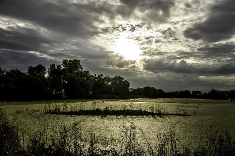 Keywords: landscape cloudy water peace field clouds sky afternoon nature plants