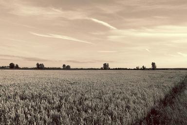Keywords: landscape cornfield trees evening lighting black and white sepia