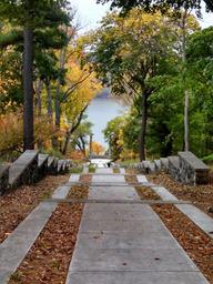 Keywords: landscape downhill path park trees nature stairs staircase autumn fall leaves outdoor travel vacation season view descent