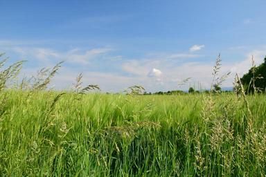 Keywords: landscape field bluegrass sky blue green spring vision clouds mood distant scenic