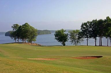 Keywords: golf green golfing golf course grass sand trap landscape lake trees sky haze georgia summer spring sport america sports outdoor activity