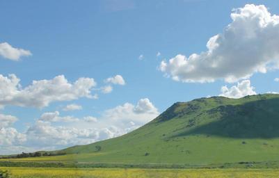 Keywords: landscape green mountain hill clouds blue sky wildflowers