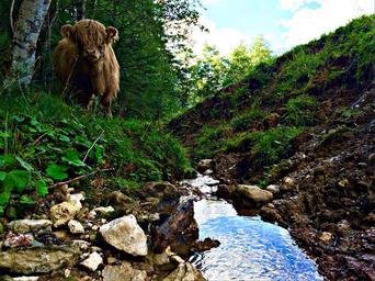 Keywords: landscape horns shaggy cattle scottish hochlandrind calf forest nature trees animal cows cow