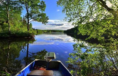Keywords: landscape lake colors trees sky nature boat blue clouds québec