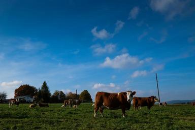 Keywords: landscape meadow cows nature field grass green sky bauer