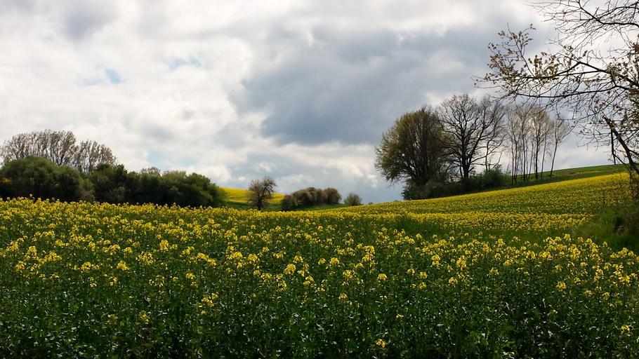 Keywords: landscape meadow sky clouds idyll rest oilseed rape nature white blue selva marine