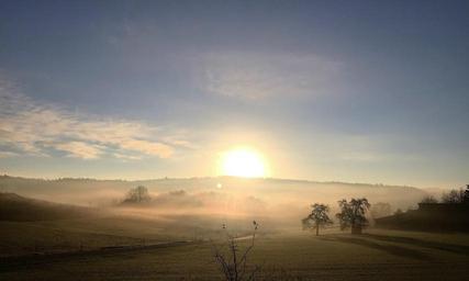 Keywords: landscape mood nature sky clouds fog autumn scenic sunrise back light