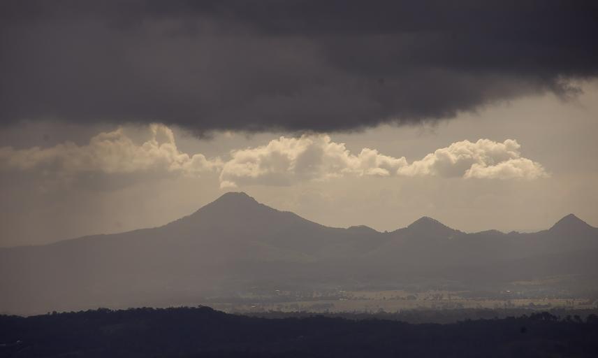 Keywords: landscape mountains hills ranges weather clouds rain grey sky rural views distance scenery australia queensland