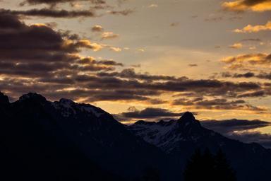 Keywords: landscape mountains mountain peaks sky clouds sunlight sunrise morning morgenstimmung nature