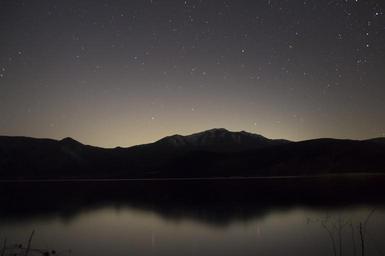 Keywords: landscape mountains stars sky dark night evening water reflection