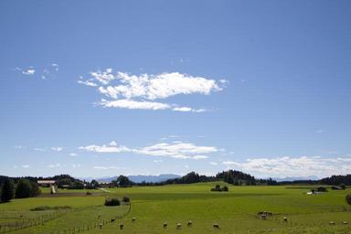 Keywords: landscape mountains upper bavaria lunch summer blue green wide angle clouds sky nature hair dryer pasture cows
