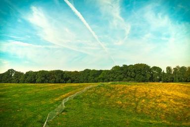 Keywords: landscape nature meadow forest of course clouds sky hill idyll rest hiking field wide distant view tree group trees relaxation relax